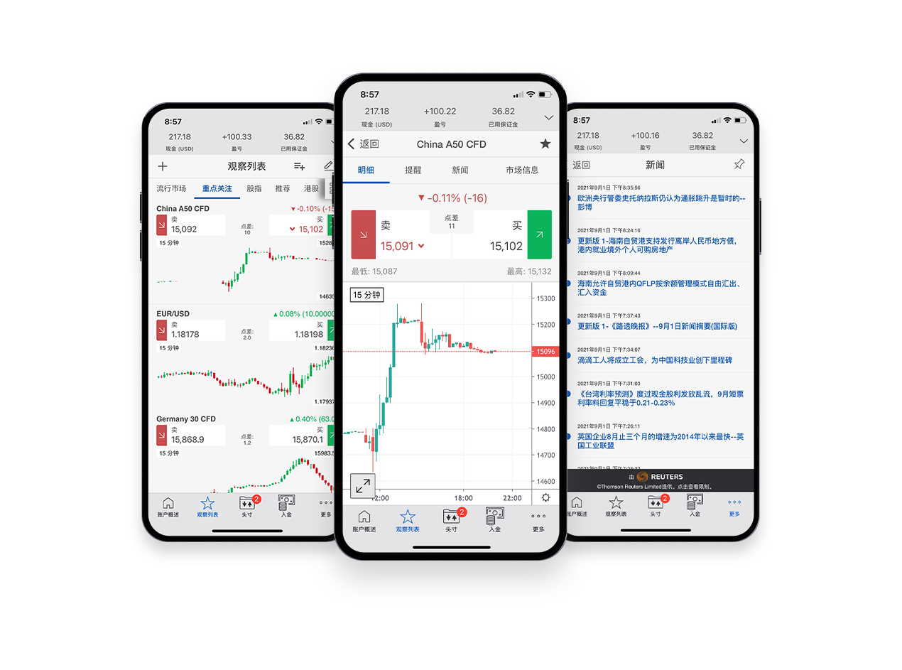 交易全球热门指数,包括华尔街道琼斯指数,中国A50指数,恒生中国企业指数等。