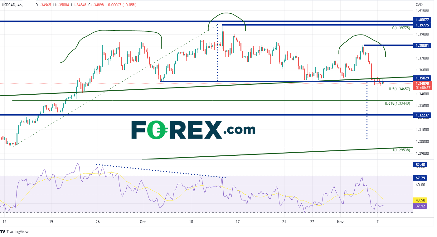 在240分钟图内,如果价格跌破1.3466,则下一个支撑位是在同时间框架内的61.8%斐波那契回档位1.3345附近,然后是7月14日的水平支撑位1.3224附近。略低于1.3000的目标位是下一个心理整数支撑位。 然而,如果50%回档位能够获得有效支撑,那么第一个阻力位是11月3日高点1.3808,然后是10月13日高点1.3978。如果价格突破该位置,下一个阻力位是1.4008,即2020年5月以来的高点。