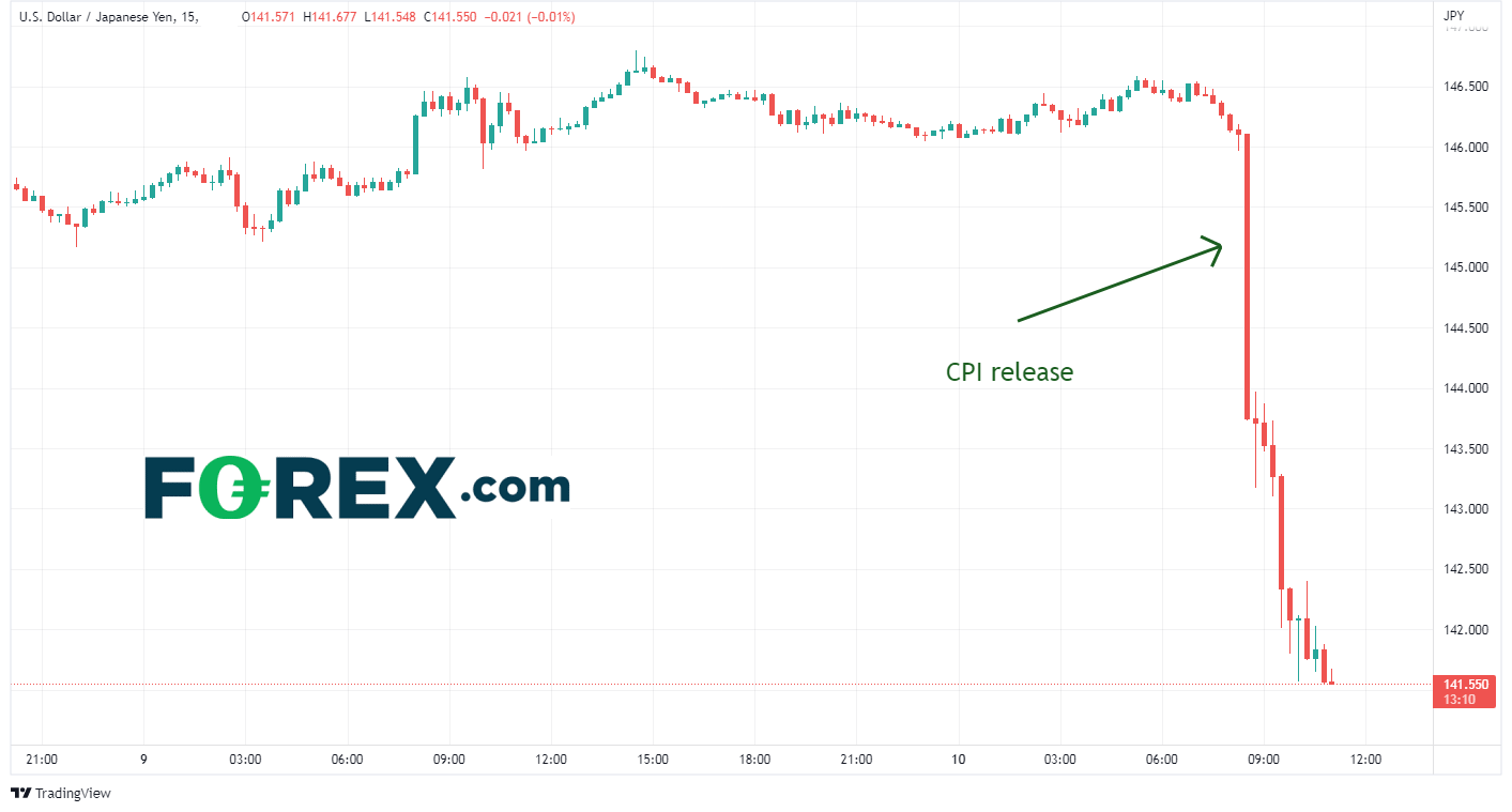 CPI数据发布后,美元自由落体式下滑,特别是美元/日元价格从146.22跳水至141.55。