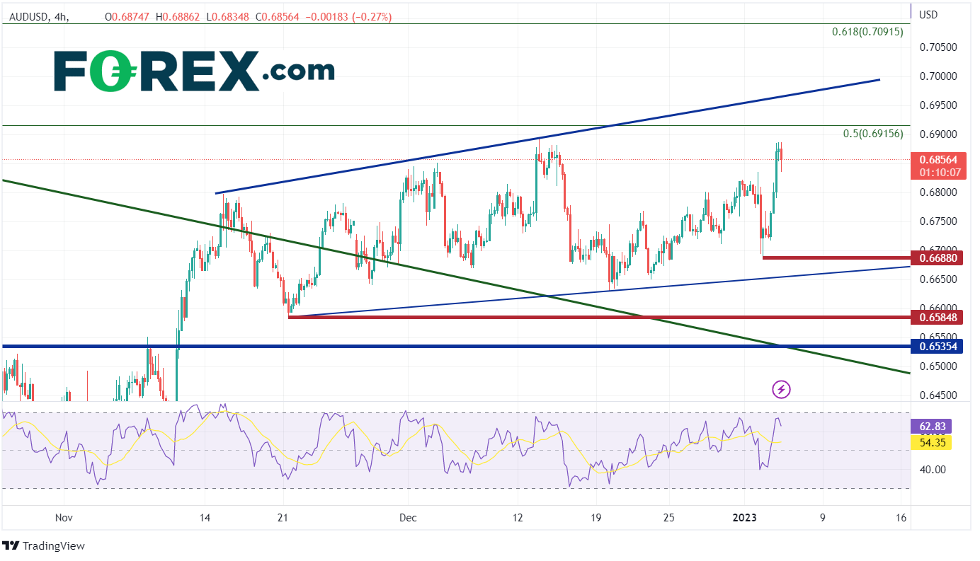 有消息称,中国正考虑从4月1日起部分放宽进口澳煤限制。此前由于澳大利亚同其他国家一起呼吁调查对中国进行新冠源头调查,导致澳煤进口遭禁。中国一边采取措施挽救房市和“大而不倒”地产开发商,一边设法缓释疫情防控措施突然放开后造成的疫情冲击及其对经济的影响。澳大利亚等国却要求自1月5日起,来自中国的游客须提交新冠检测阴性证据才能入境。所有来自中国的利用好消息推助澳元抓住中国未来经济扩张的涨势,进而刺激澳元/美元上涨。