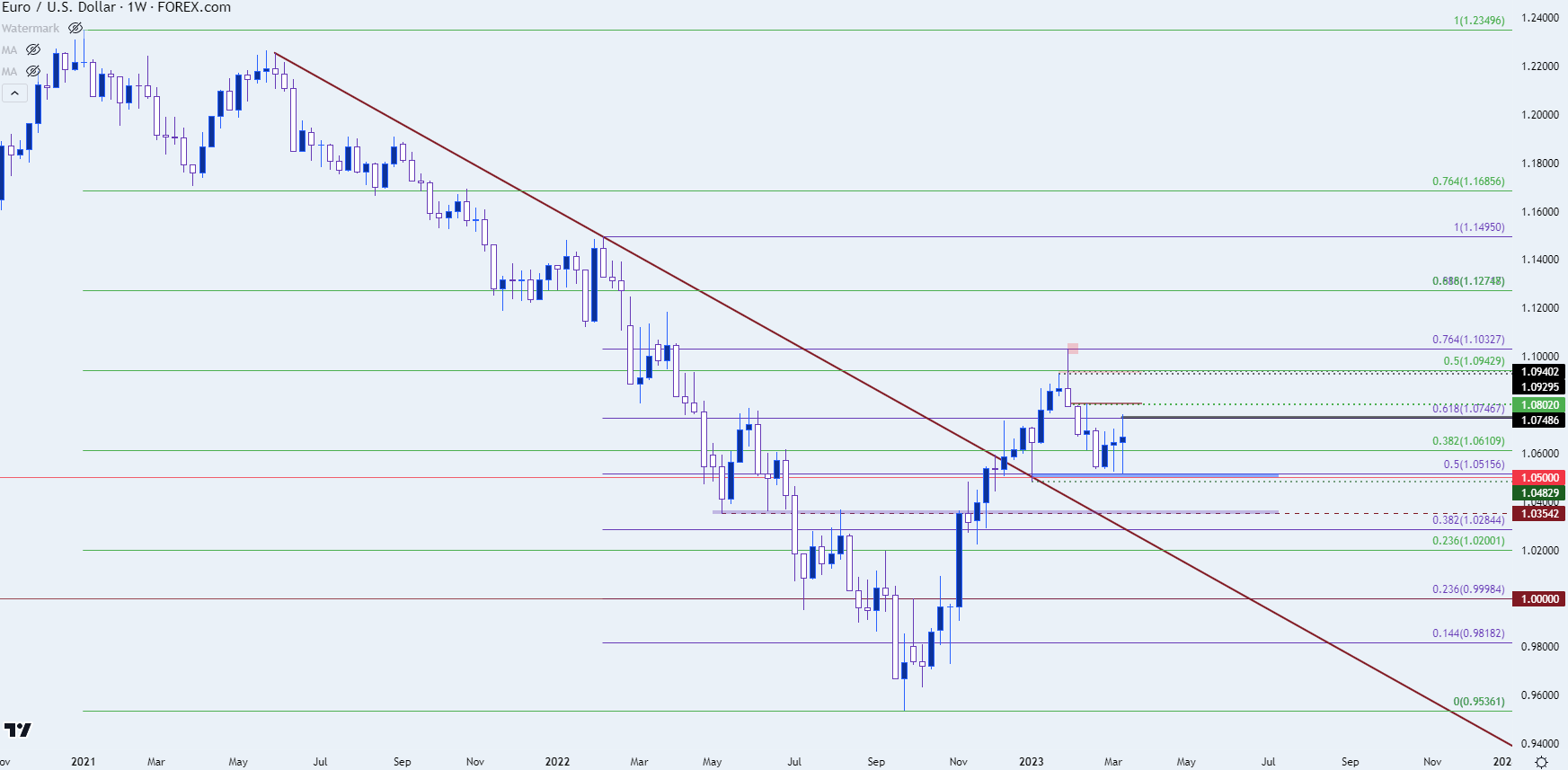 图表由James Stanley绘制,Tradingview上的欧元/美元