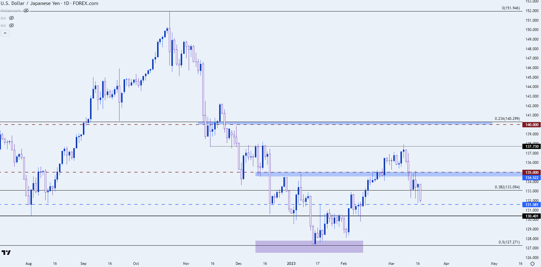 周三,美元由于对美国银行业的担忧而走强时,少数几个没有展现出美元强势的货币对之一是美元/日元。