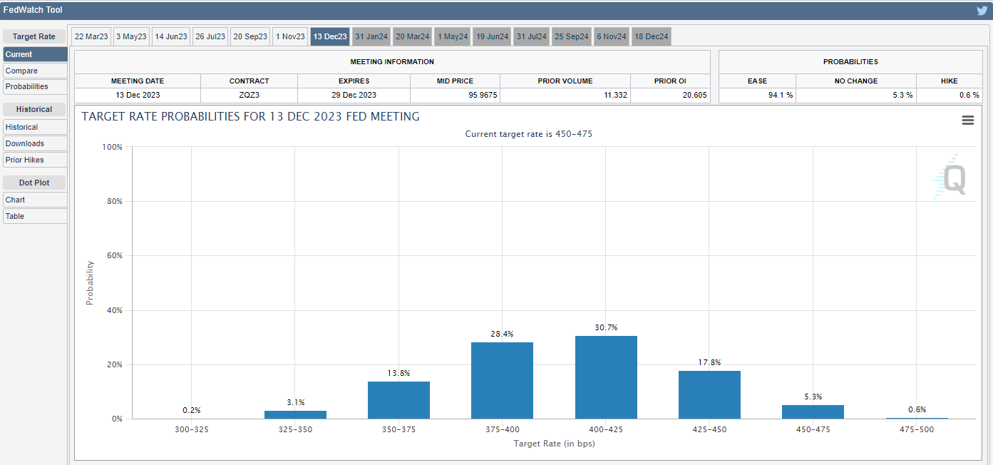 芝商所Fedwatch – FOMC 12月13日议息会议,联邦利率目标可能性