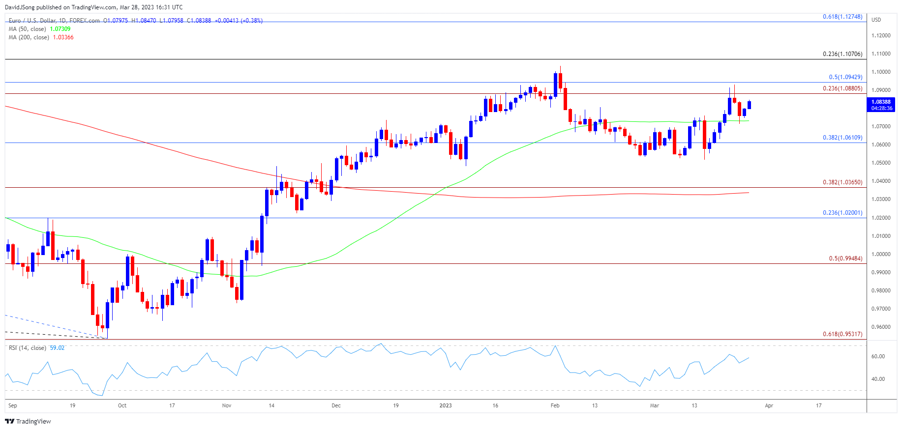 - 但未能上破/收盘高于1.0880(23.6%斐波那契延伸位)至1.0940(50%斐波那契回撤位)区域可能会将欧元/美元拉回至50日均线(1.0731),跌破移动平均线则看向1.0610(38.2%斐波那契回撤位)区域。