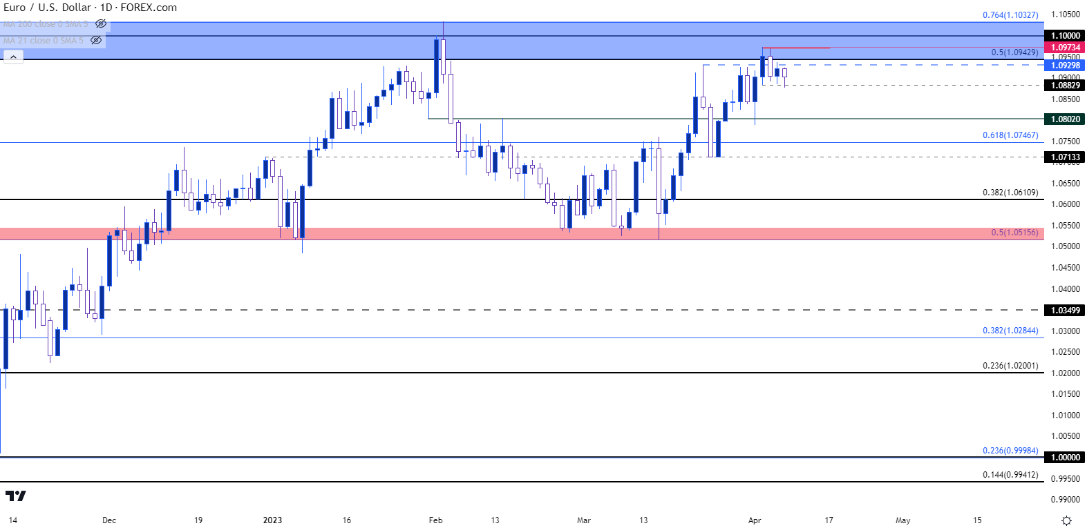 当NFP于周五发布时,欧元/美元便开始走弱,直到再次触及支撑位1.0883才止跌。从日线图来看,各方面条件还不至于令多头完全投降,因为本周仍然延续了更高的高点和低点的看涨走势。但实际情况发生在1.1000关口附近,此处还有一些其他阻力位,这使得该货币对仍有可能出现波动。
