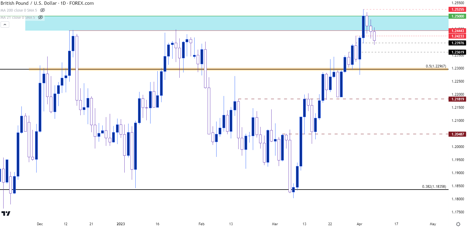 英镑自去年6月以来首次突破1.2500关口。但是,与欧元/美元一样,价格在周二高点后开始回落。本周后半段的回调相对稳定,支撑位出现在之前的阻力位1.2443、1.2423和1.2398附近。在1.2362附近还有另一个短期支撑位,之后看向斐波那契点位1.2297。
