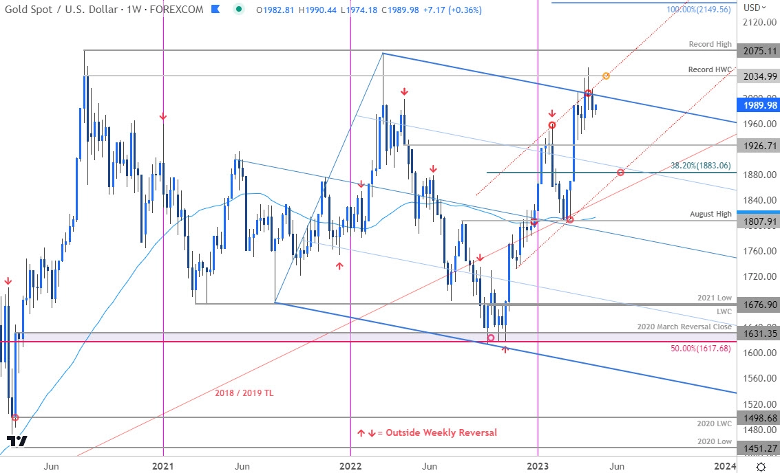 首要的周线支撑位于2022年4月反转的周高收盘价/1月收盘价所在的1926/28,更长远的看涨研判位现在升至9月涨幅的38.2%斐波那契回撤位1883。