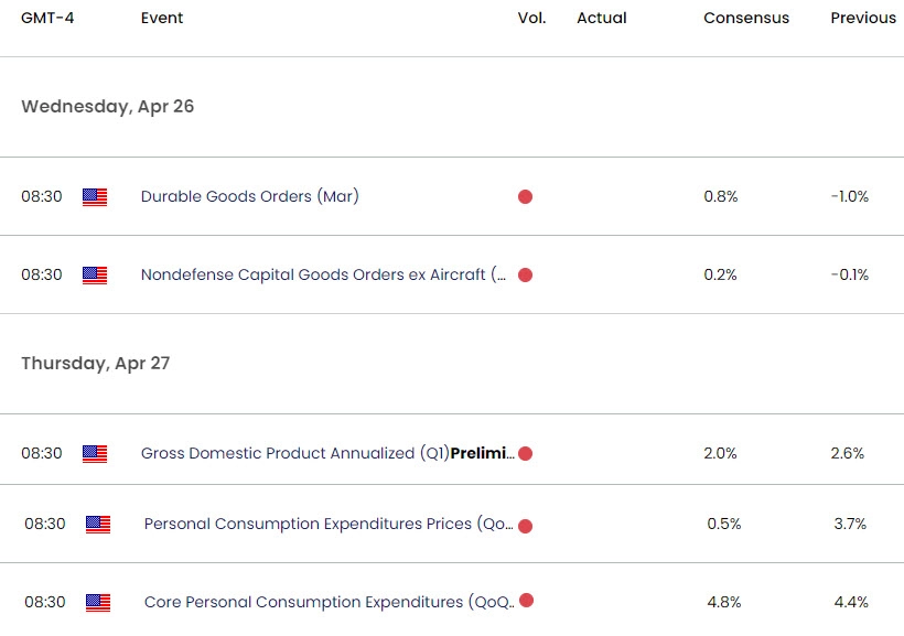 总结:黄金正在测试上行复合阻力位,虽然形成了动能背离,但是更长远的前景仍然偏多,但在低于周高收盘价的情况下,更大幅度回调的风险仍然存在。从交易角度来看,随着5月即将到来,我们要寻找交易的衰竭低点,收盘价高于2035才意味着涨势恢复。查看我最新的黄金短期技术展望,详细了解黄金/美元短期技术交易点位。