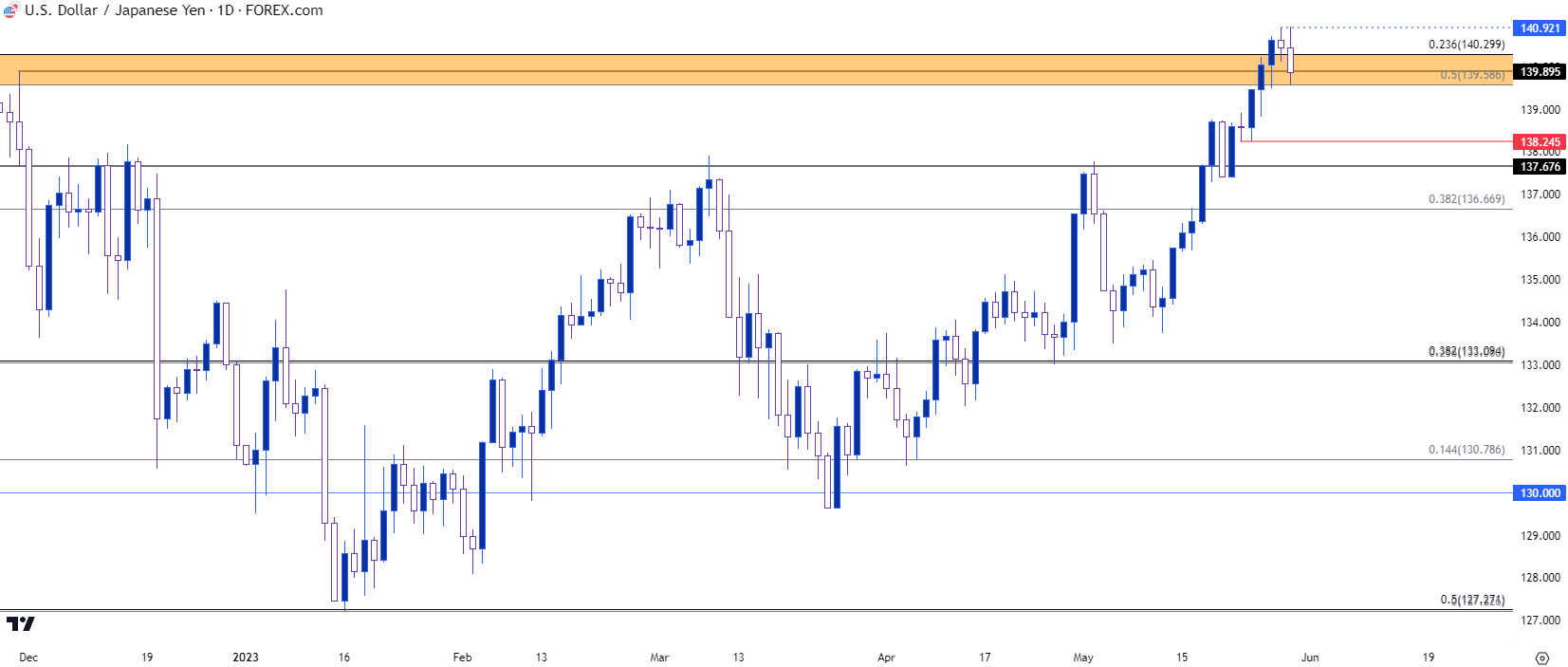 图表由James Stanley绘制,TradingView上的美元/日元