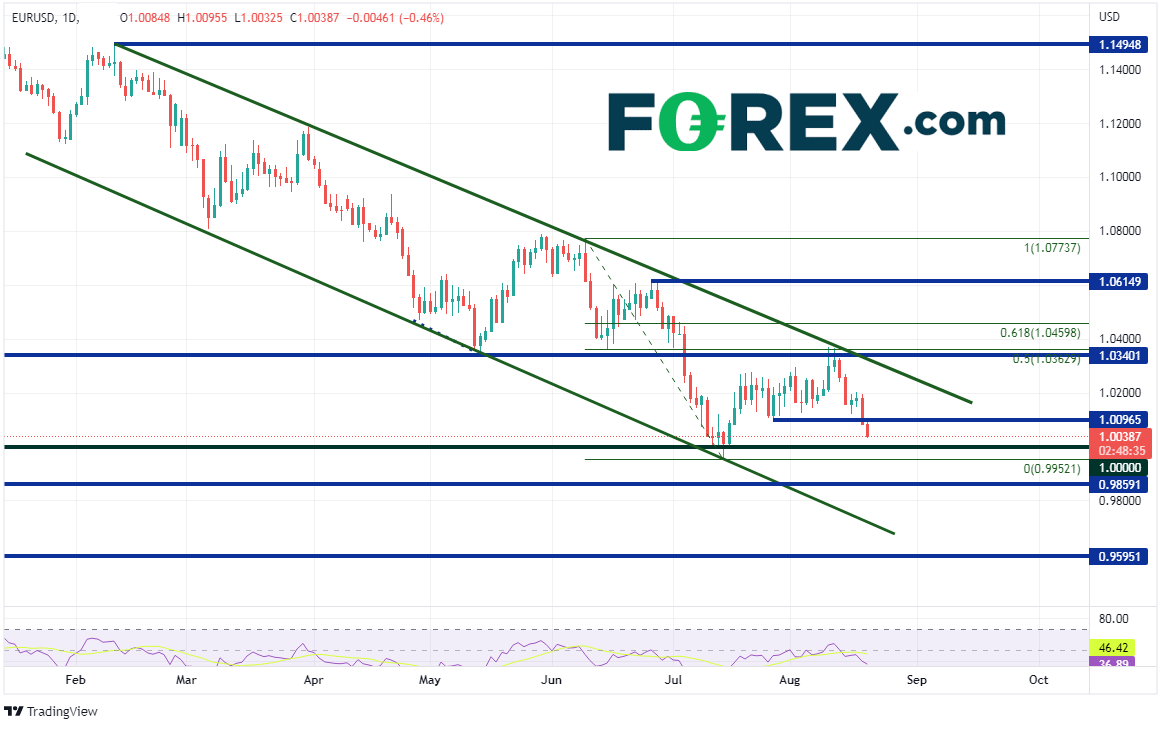 本周美元将最终平静下来吗?也许吧,但平静可能只维持到周五鲍威尔在杰克逊霍尔大会讲话之前。另外,美国将公布美联储重视的通胀指标核心PCE。请留意美联储官员的讲话,如果强硬,鲍威尔周五的讲话基调也可能更加强硬。