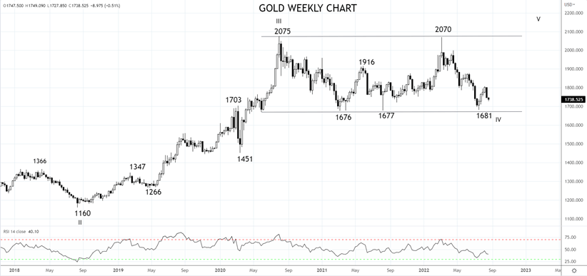 但请记住,一旦金价下破1670/60并持续走低,可能打开先后跌至1557和1451的空间。