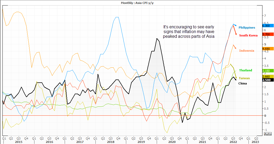 在很多央行看来,通胀率显然依然过高 – 但也在朝着正确的方向演变。如果韩国、中国等出口驱动型国家的物价压力减弱,对其贸易伙伴(比西方国家)来说可能是利好。