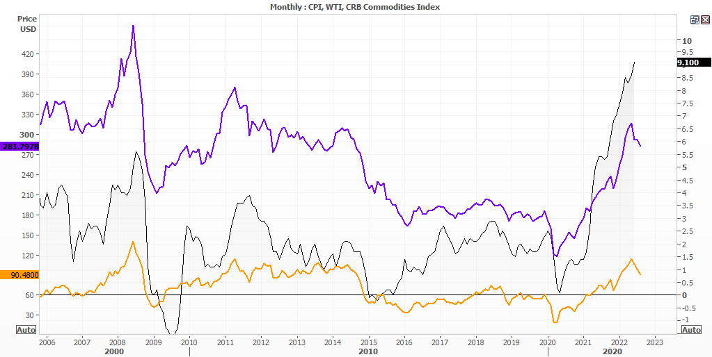 我们早在6月份就深入分析了通胀压力。当时我们先看到美国CPI从8.5%回落至8.2%,呈现通胀见顶的早期信号。我们在报告中指出,不能只看一个月的数据就确认通胀触顶。事实证明我们是正确的,美国通胀率现在达到9.1%。另外,在大宗商品价格继续上涨的同时,某些领域的通胀压力也在减弱。今天我们将再度观察之前观察过的各项指标,判断通胀是否距离飘忽的顶部更近了一步。