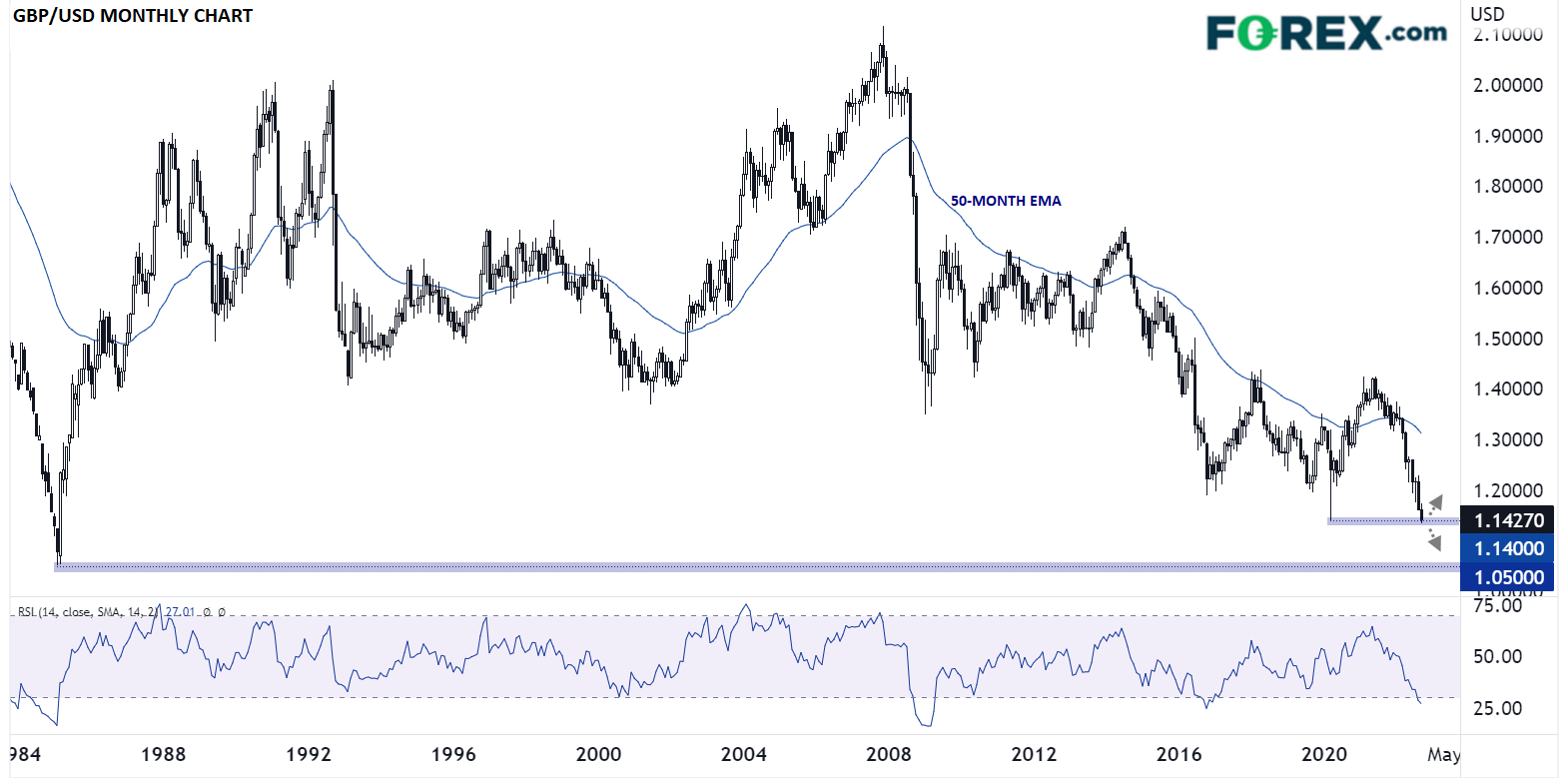 如上所述,能源价格如果持续上涨,或者通胀持续高企、欧洲大陆经济严重衰退,可能加速英镑/美元跌至平价的进程。英镑/美元技术面目前正在考验疫情期间低点1.1400附近,这是通往1985年低点1.0500附近的最后一道防线。跌至平价目前来看仍然并非最可能的结果,但价格如果下破1985年低点,这种可能性在英镑/美元汇率200多年的历史里可能首次变得真真切切。
