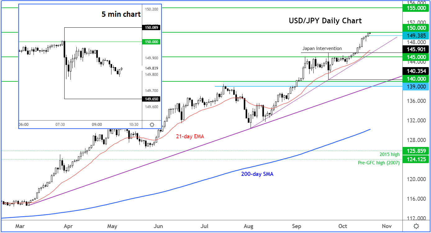 正如我的亚洲分析师同事Matt Simpson所指出的,美元/日元“几乎不可避免地会突破[150.00],但问题是突破后会发生什么。”您瞧,它的确突破了150关口。现在是否会像Simpson所想的那样,“招致财政部或日本央行官员更严厉的‘措辞’?”